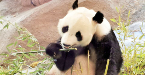 Vitiligo-supermalli häikäisevissä biksuissa – taustalla Dubain palmusaaret