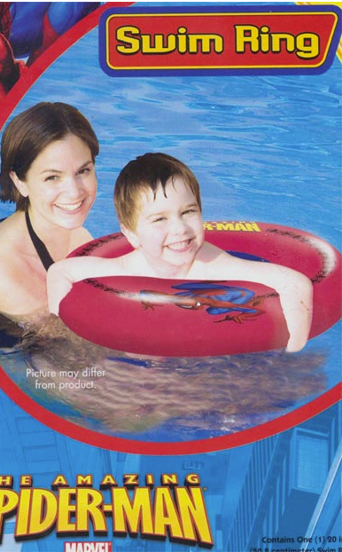 Lasten uimarenkaan pakkauksessa nähdään nimittäin iloinen äiti ja poika nauttimassa vesileikeistä uima-altaassa. Nopeasti silmäiltynä kuvassa ei ole mitään ongelmaa, mutta hieman tarkemmin katsottuna pikkupojan kädet näyttävät hieman erikoisilta. Näyttää siis siltä, että joko kuminen uimarengas tai uima-altaan vesi on sulattanut osan pojan käsistä uintiretken aikana.