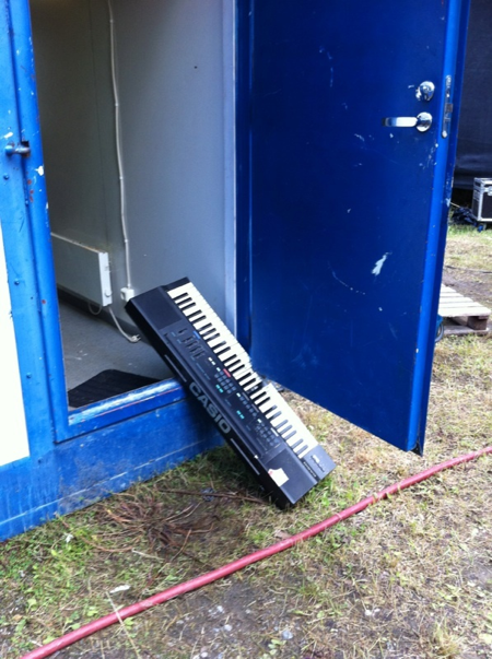 Kuumassa ja kosteassa ilmastossa takahuone ei ollut aivan viileimmästä päästä. Tästä syystä räväkkä yhtye päätti avata takahuoneena toimivan kontin oven. Se ei ollut kuitenkaan pysyä auki, joten yhtye päätti käyttää apuna kosketinsoitintaan. Sama soitin nähtiin samana päivänä myös yhtyeen keikalla, vaikka sen kunto ei ollutkaan aivan parhaasta päästä.