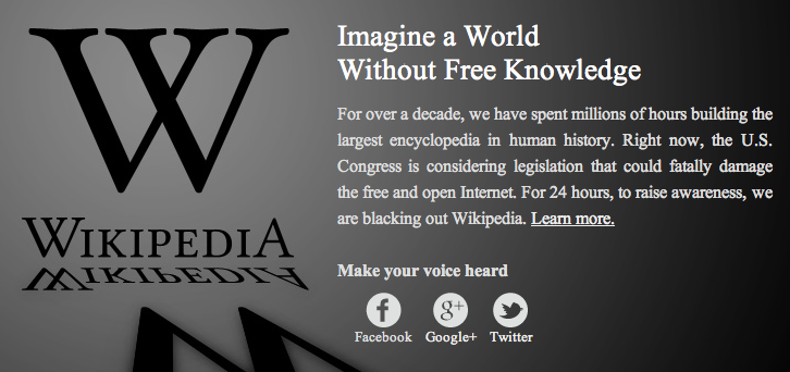 Kyseessä on nimittäin valtava mielenilmaus Yhdysvalloissa valmisteilla olevaa SOPA-nettilakia vastaan. Kyseessä on pähkähullu laki, joka antaisi hallitukselle mahdollisuuden sulkea piratismin varjolla minkä tahansa verkkosivuston mukaanlukien Googlen, Facebookin ja YouTuben.