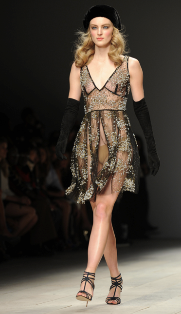 Ensi syksyn ja talven muotia on esitelty kuluneella viikolla Lontoossa. Nyt tuoreet kuvat ovat peräisin Somerset Housen Autumn/Winter 2012 -muotinäytöksestä, jossa esiteltiin tulevan kauden uutuusasuja. Eräs niistä on nyt ylittänyt uutiskynnyksen myös viihdelehdissä.