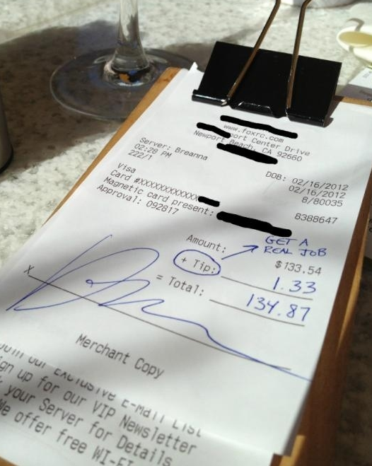 Nyt Yhdysvalloissa Los Angelesissa on kuvattu asiakkaat tarjoilijalle jättämä kuitti, jossa viitataan samaan kansanliikkeeseen ja rahatippi on muuttunut käytännölliseksi neuvoksi. Kaiken lisäksi myös varsinaista tippiä on jätetty, mutta tasan yhden prosentin verran loppusummasta.