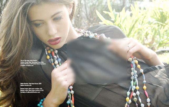 Kalia Prescott poseeraa Walter Mendez Collection -vaatemalliston mainoskuvissa Regard-lehden sivuilla. Metsän siimeksessä ikuistetuissa muotikuvissa hänen yllään nähdään myös läpinäkyvä harsomainen paita, joka paljastaa liikaakin yksityiskohtia nuoren neitokaisen vartalosta. Näin nuoren mallin paljastavia kuvia ei ole katsottu suopeasti.