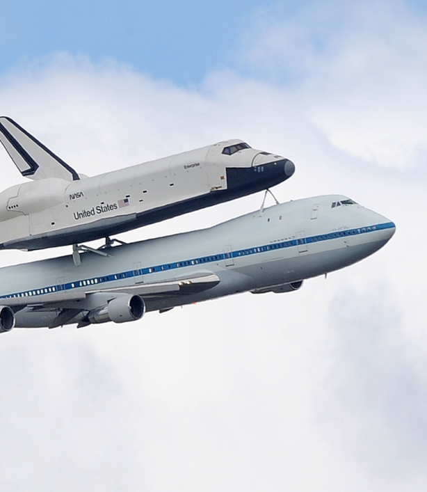 NASA lennätti nimittäin avaruussukkula Enterprisen viimeiselle lennolleen tukikohdastaan Washington DC:ssä sijaitsevaan avaruusmuseoon, jonne sukkula asetetaan näytille. Tällä matkalla NASA järjesti myös PR-mielessä tempauksen, joka kiinnitti miljoonat silmäparit taivaalle. Enterprise sai nimittäin kunnian lentää Boeing 747 -kuljetuskoneensa selässä näyttävästi miljoonakaupungin yli.