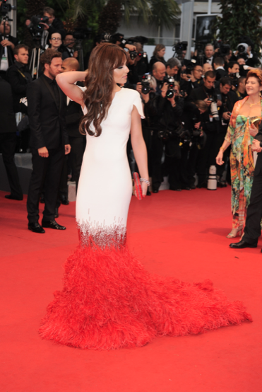 Nyt 29-vuotias poptähti on kuvattu Cannesin elokuvajuhlilla, jossa hän saapui juhlapaikalle näyttävässä punavalkoisessa asussa. Valokuvaajat saivatkin aikaan hauskoja kuvia, sillä asun alaosa oli lähes samanvärinen kuin punainen matto. Sen tuoksena poppari ikään kuin sulautui punaiseen mattoon.