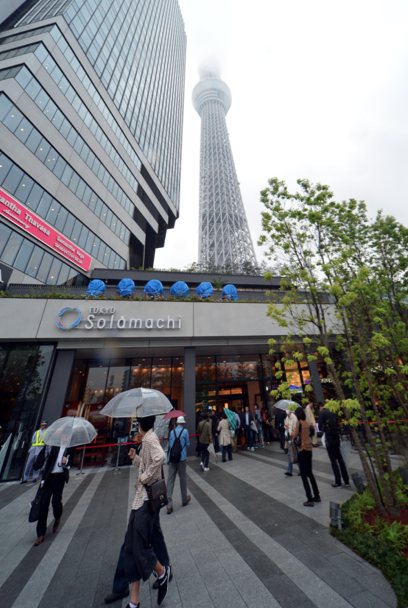 Torniin ja sen alla sijaitsevaan matkailukeskukseen odotettiin pelkästään avajaispäivänä yhteensä yli 200.000 ihmistä. Tokyo Solamachi -keskuksessa on esimerkiksi ravintoloita ja elokuvateattereita sekä akvaario ja planetaario.