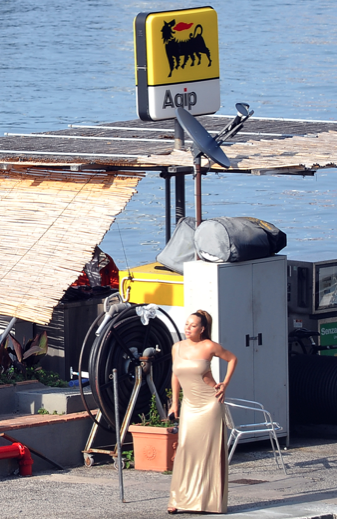 Raskauskilonsa nopeasti karistanut supertähti on nyt kuvattu lähdössä veneilemään John Kennedyn aikoinaan omistamalla Marlin-aluksella. Neitokainen oli hieman ylipukeutunut vesille, sillä hänellä oli yllään vartaloa nuoleva iltapuku, joka ei jättänyt juuri arvailun varaa neitokaisen vartalosta.