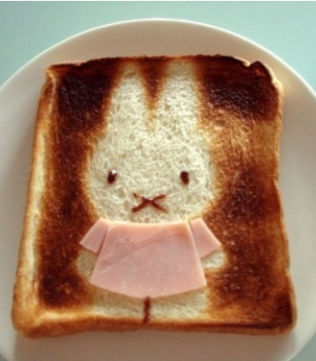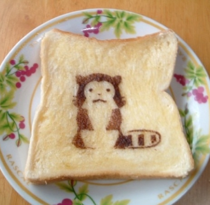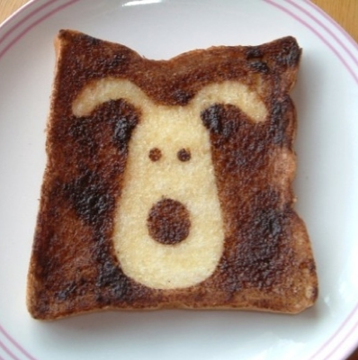 Söpöissä paahtoleivissä nähdään lukuisia eläinaiheisia tuotoksia. Yhden paahtoleivän päälle on muun muuassa taiteiltu kanaa muistuttava hahmo. Punaiselle lautaselle asetetun paahtoleivän vaaleat kohdat puolestaan muistuttavat koiran tassun jäljeltä.