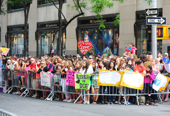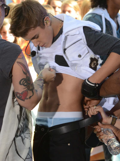 Nyt 18-vuotias poppari on aiheuttanut tungosta vuorostaan New Yorkissa, jossa hän oli Today Show -ohjelman vieraana. Ohjelmaa kuvattiin ulkosalla, joten kuvauksia seuraamaan oli saapunut sankka joukko popparin faneja. He saivatkin nähdä kuinka Bieber paljasti vatsansa hieman ennen kuvausten alkamista.