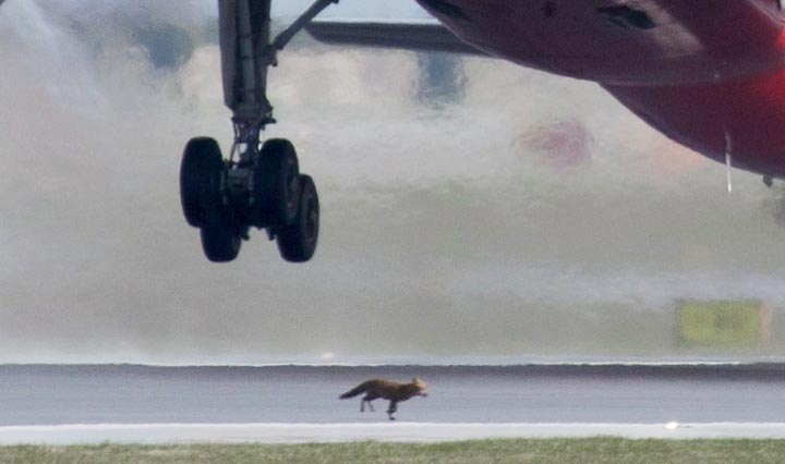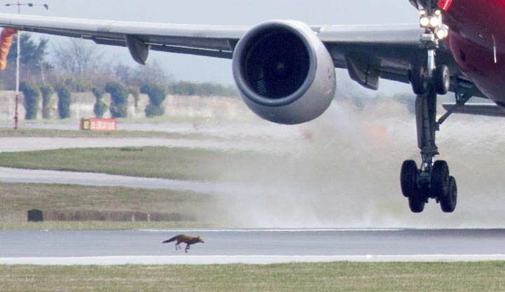 Samaan aikaan myös kettu oli päättänyt kulkea kiitotien yli, ja se joutuikin lopulta pinkomaan henkensä edestä. Törmäystä ei lopulta tullut, ja noin 260 kilometrin tuntinopeudella lähestynyt lentokone pääsi onneksi nousemaan normaalisti.