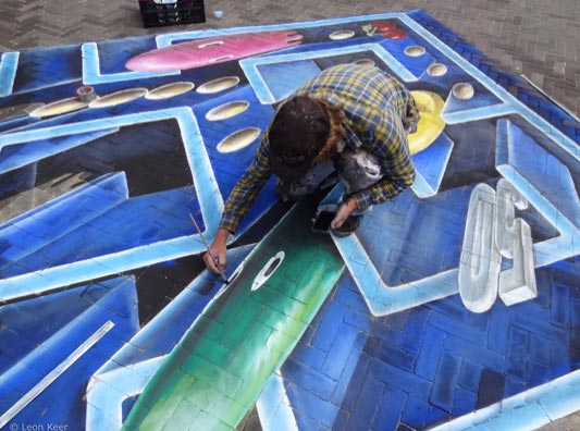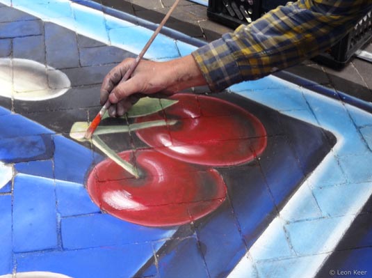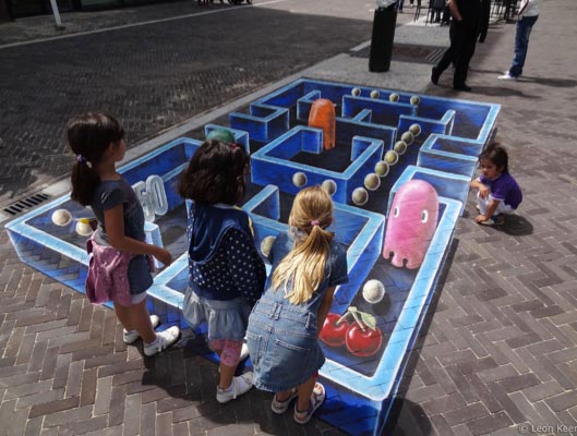 Keer taiteili Venlon kaupungin katukivetykseen legendaarisen Pacman-hahmon pelikenttineen. Peli näyttää kadulla hämmästyttävän aidolta ja se onkin saanut suuren suosion kansalaisten keskuudessa. Taiteilija itse kertoo halunneensa maalata esiin muistoja menneestä. Maalauksen tekemiseen meni kolme päivää.