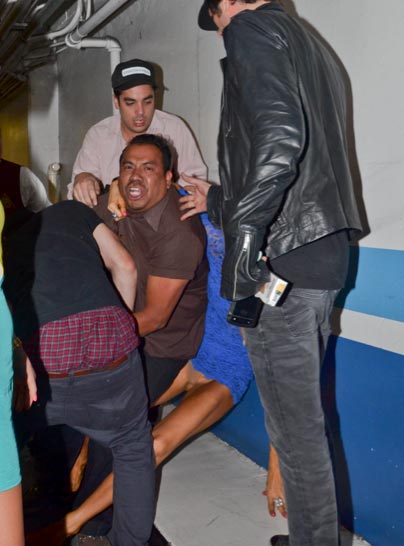 Blondi joutui innokkaiden valokuvaajien keskelle ja tilanne muuttui pian rumaksi. Eräs paparazzi nimittäin tönäisi julkkistähden vahingossa seinää päin. Paris Hiltonin minimekko nousi rytäkässä hieman liian ylös, ja tähden haaroväli ikuistettiin kameroille.