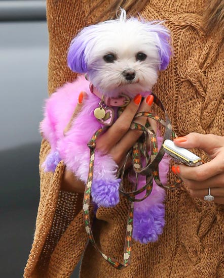 Kahden lapsen äiti ei kuitenkaan ole ensimmäinen, jonka värjätty lemmikki on saanut eläinsuojelujärjestön kauhistumaan. Esimerkiksi Jersey Shore -realitysarjan tähtöset Nicole ”Snooki” Polizzi ja Jenni ”Jwoww” Farley saivat järjestöltä täyslaidallisen värjättyään Jennin lemmikkikoirien turkit. Yllättävää kyllä tiukasti julkisuuteensa tarraava 17-vuotias teinivaimo Courtney Stodden ei kuitenkaan saanut kritiikkiä koiransa värjäämisestä. Neitokainen päätyi lopulta järjestön edustajaksi.
