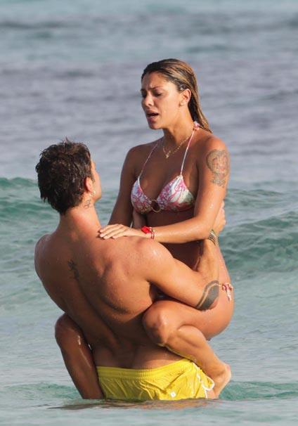 Belen aiheutti taannoin skandaalin, kun hänen kotipornovideonsa päätyi julkisuuteen. San Remon -laulufestivaalia viime vuonna Italiassa kaunistuttanut Belen Rodriguez pitää bikineissä poseeraamisesta ilmeisen hyvin. Tällä kertaa kaunotar on kuvattu nauttimassa täysin rinnoin lomastaan rannalla yhdessä ystäviensä ja poikaysävä Stefano De Martinon kanssa. Belen sai rannalla vauhdikasta kyytiä.