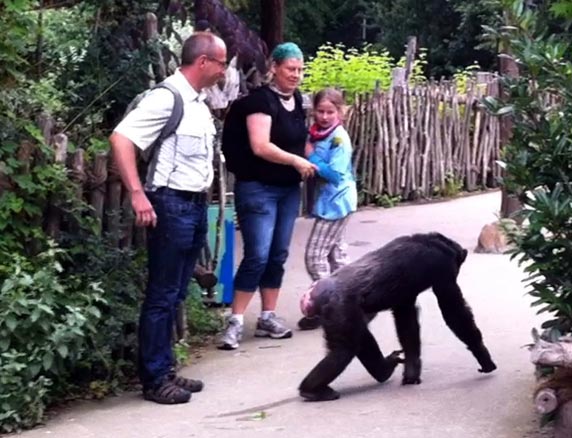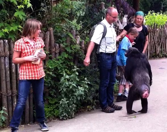 Tällä kertaa onni oli kuitenkin matkassa, sillä kukaan ei loukkaantunut välikohtauksessa, vaikka simpanssit ryntäsivät ihmisten sekaan ja ottivat heistä kiinni. Eräs simpanssin kohtaamaksi joutunut turisti oli 34-vuotias Kai Hauser, joka sai kuvattua tilanteen iPhonen kameralla. Hauserin mukaan simpanssit käyttäytyivät hyvin rauhallisesti ja tuttavallisesti, mutta silti uhkaavasti.