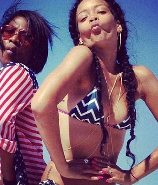 Nyt Rihanna on onnistunut karistamaan hetkeksi paparazzit kintereiltään, joten neitokaisen on täytynyt julkaista itse verkossa omia bikinikuviaan. Viikonloppuna Rihanna julkaisi Twitter-blogissaan näyttäviä kuvia, joissa hän keikistelee tietenkin bikineissä.