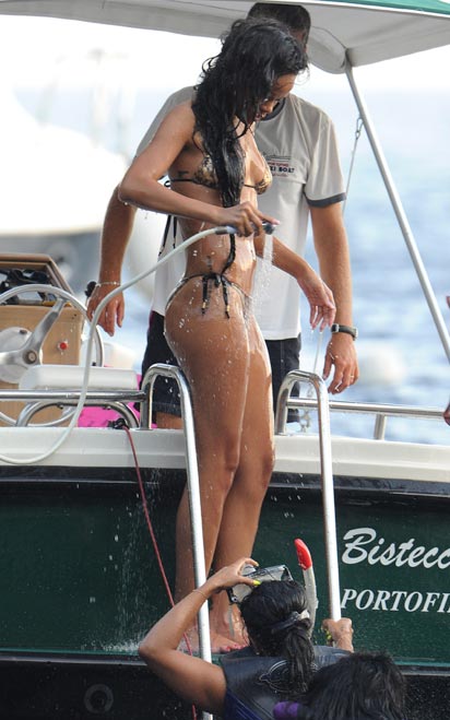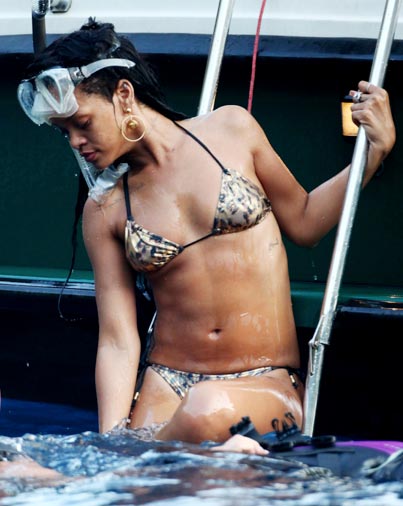 Aiemmin tällä viikolla Rihanna kuvattiin nautiskelemassa Välimeren aalloista Ranskassa, mutta nyt Rihanna on siirtynyt Italian Portofinoon, jossa hän lekottelee parhaillaan huvijahdilla yhdessä ystäviensä kanssa. Ryhmä nautiskeli eilen vesileikeistä, joissa myös Rihanna oli mukana.