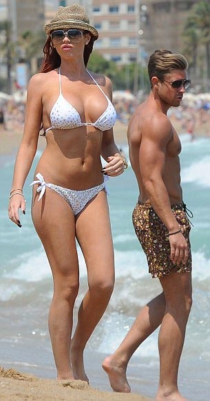 Realitytähti esitteli taannoin ensimmäistä kertaa uudet 32DD-kokoiset rintansa lomallaan Dubaissa. Nyt paparazzit ovat ikuistaneet neitokaisen lomailemassa rannalla komean miesseuralaisen kanssa. Amy oli itse verhonnut muhkeat muotonsa valkoisiin bikineihin.