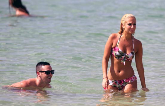 Neitokainen on viime aikoina oleskellut Havaijilla kuvaamassa uusinta Live It Up -musiikkivideotaan. 24-vuotias laulajatar otti myös kuvausten välissä aikaa vesileikkeihin, jotka herättivätkin paparazzien huomion. Vaaleakutrinen Tulisa ihastutti kuvaajat ruskettuneella rantakropallaan, joka kiilteli märkänä auringossa.