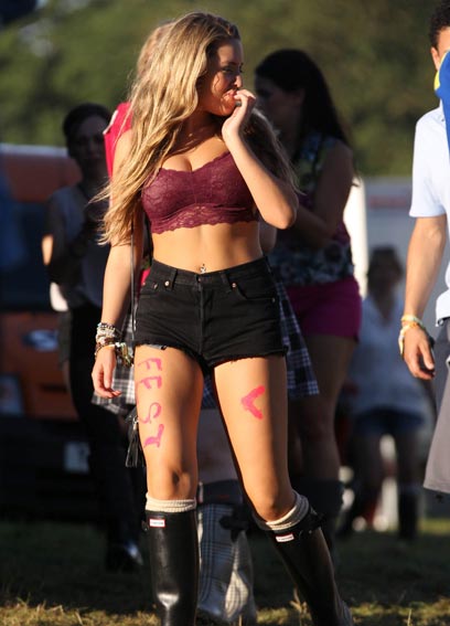 Nyt teinitähti on kuvattu osallistumassa viikonloppuna Staffordshiressä järjestettyyn V Festival -tapahtumaan yhdessä monien muiden julkkistähtien kanssa. Abi tosin erottui joukosta poikkeuksellisen näyttävällä festariasulla, sillä kovin kiltiltä tytöltä hän ei festariasussaan näyttänyt.