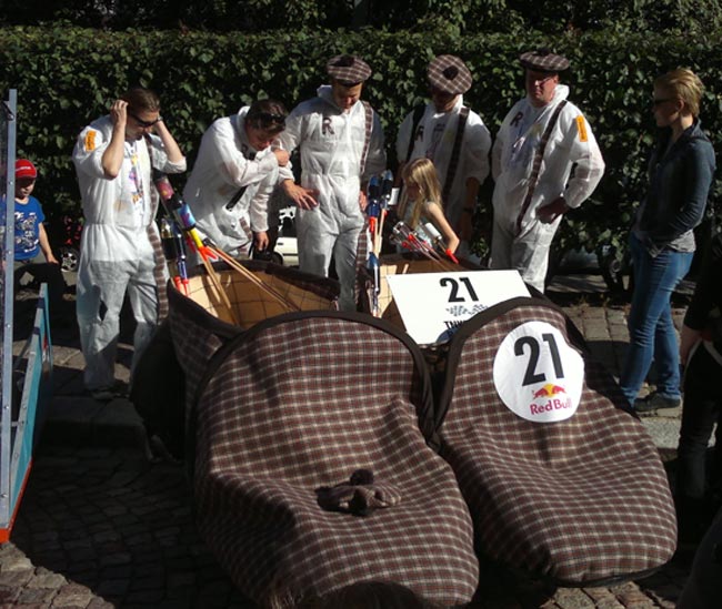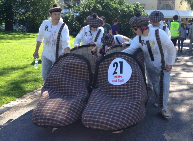 Helsingissä järjestettiin tänään perinteinen Red Bull Mäkiauto GB, jossa sankka joukko tiimejä kisaili toinen toistaan erikoisemmilla mäkiautoilla. Jokainen joukkue oli suunnittellut ja rakentanut oman kekseliäisyyttä ja luovaa hulluutta vaativan mäkiautonsa.