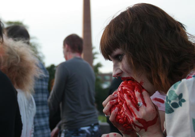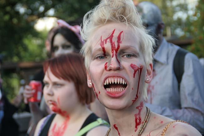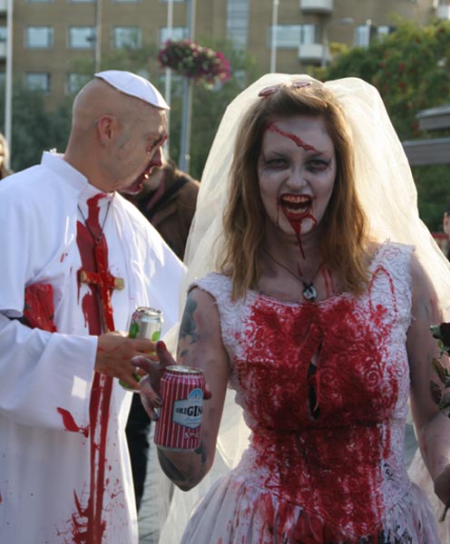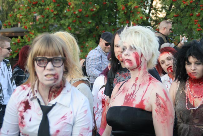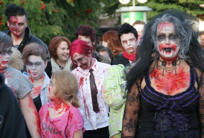 Zombiewalk on esimerkiksi Espanjassa jo vuosikymmenien ajan järjestetty tapahtuma, jossa suuri joukko ihmisiä pukeutuu verisiksi zombieiksi. Suomeen tapahtuma rantautui vuonna 2006. Eilen Tampereen keskustassa järjestettiin myös Venetsialaiset, joissa Von Hetrzen Brothers esiintyi massiivisen ilotulituksen säestämänä.