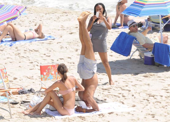Nykyisin Simmons seurustelee Sasha Volkovan kanssa, ja eilen hän esitteli tuoreen tyttöystävänsä paparazzeille rannalla, jossa Volkova nautiskeli auringosta bikineissä. Russell pyhitti hetken ajastaan myös rannalla joogaamiselle.