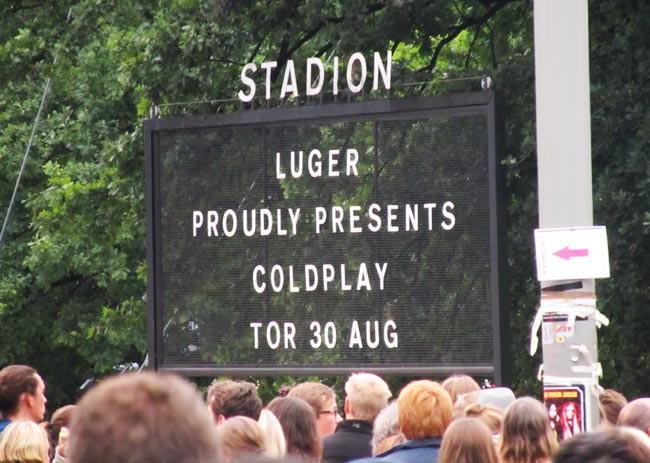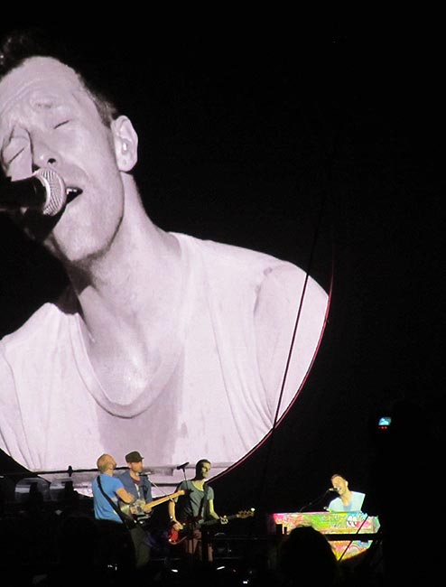 Suosikkiyhtyeen noustessa lavalle kaksi ensimmäistä kappaletta olivat kirjaimellisesti kuin ilotulitusta. Yhtye otti kerralla löysät pois led-rannekkeiden, viiden jättimäisen videonäytön, pyrotekniikan ja ilotulituksen voimin. Yleisömeri oli rannekkeiden ansiosta kuin yksi valtava välkkyvä valoefekti. Räväkämpi alun jälkeen siirryttiin hieman rauhallisempiin tunnelmiin, kunnes Viva La Vida herätti jälleen yleisön. Lähes loppumattoman hittiputken suosikkeja olivat myös Yellow, In My Place, The Scientist, Clocks ja Paradise, mutta yhtyeen settilistasta jäi vielä puuttumaan monia hittejä.