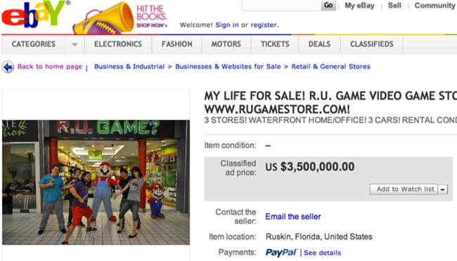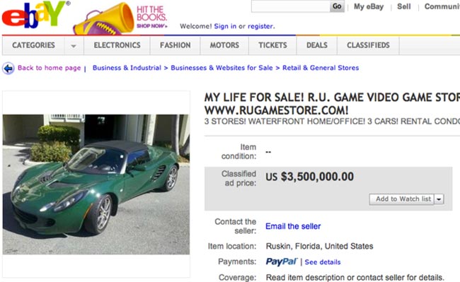 Lähtöhinnaksi mies on asettanut 3,5 miljoonaa dollaria. Shane Butcher on käyttänyt tähänastisen aikuiselämänsä rakentaakseen suuren videopeliketjun, ja nyt hän on saavuttanut tavoitteensa. Seuraavaksi on aika keskittyä matkailuun yhdessä vaimon kanssa.