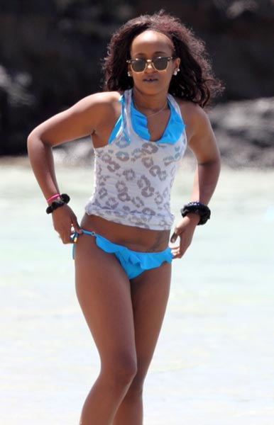 Nyt 18-vuotias Bobbi Kristina on kuvattu perhelomalla Havaijilla. Neitokainen vietti siellä rantapäivää sinisessä bikiniasussa, jonka päälle teini oli kietaissut t-paidan. Snorklaamaankin innostunut kaunotar todisti otoksilla olevansa hyvässä rantakunnossa, minkä varmasti allekirjoitti myös mukana ollut ottoveli ja poikaystävä Nick Gordon.