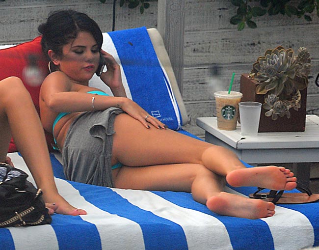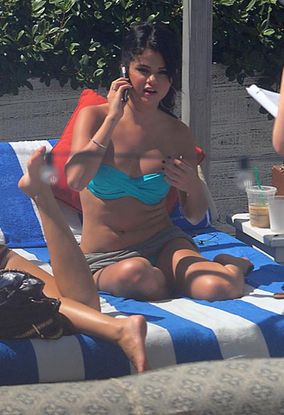 Nyt 20-vuotias Disney-kaunotar Selena Gomez ikuistettiin nauttimassa auringosta sinisissä tuubibikineissä. Tummahiuksinen tähti vietti vapaapäiväänsä jäätelöä syöden ja vartaloaan paahtaen. Gomez ei näyttänyt välittävän puskissa piileskelleistä paparazzeista.