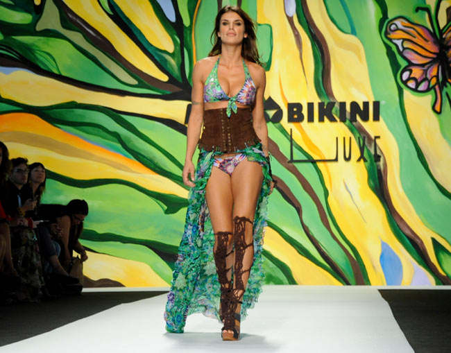 Äskettäin Elisabetta Canalis poseerasi Max-lehden kannessa vähäpukeisena. Nyt hän on noussut vuorostaan muotinäytöksen catwalkille Milanon muotiviikoilla, jossa hän esitteli Miss Bikini 2012/2013 -malliston uutuuksia.