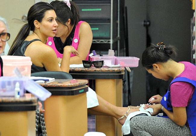 Muotojaan rakastava Kim kuvattiin tiistaina kauneushoitolassa Los Angelesissa. Tummahiuksinen realitytähti oli upea ilmestys myös ilman meikkiä, sillä hän käänsi katseita nahkamekollaan ja iloisuudellaan. Nainen on kuvannut viime päivien aikana realityohjelmaansa Khloe-siskonsa kanssa Miamissa.