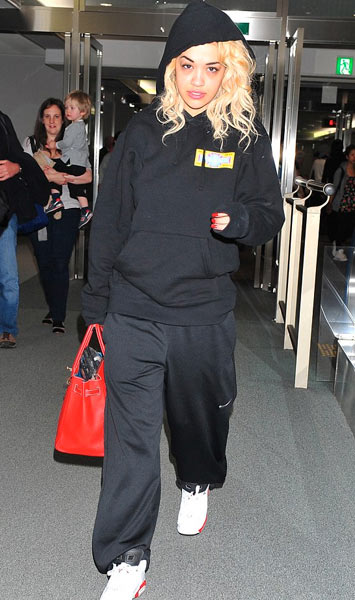 Tuhdissa meikissä julkisuudessa esiintynyt poppari on nyt nähty ilman meikkiä. Rita esitteli luonnonkaunista olemustaan Tokion lentokentällä. Väsyneen näköinen tähti ei ollut otoksissa aivan oma hemaiseva itsensä, sillä hän oli verhonnut kurvikkaan olemuksensa äijämäisesti huppariin ja verkkariasuun.