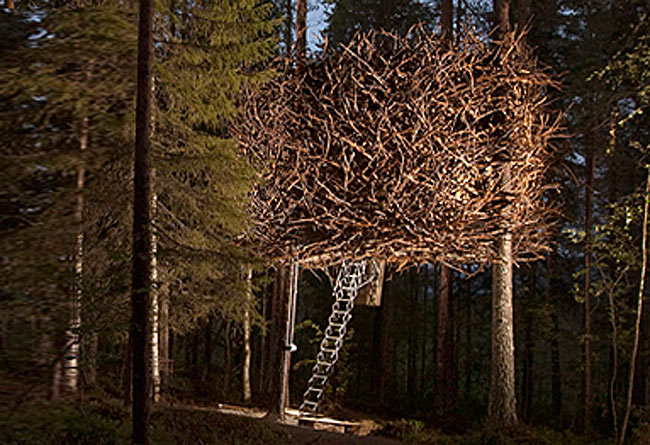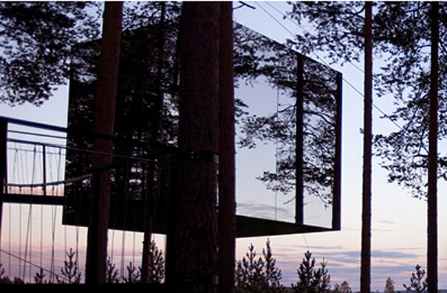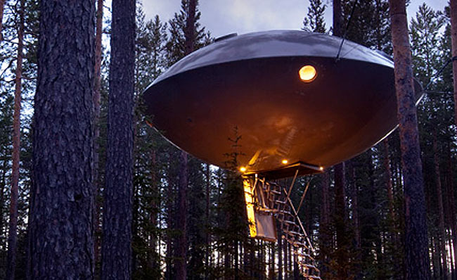 Myös tuorein tulokas löytyy Ruotsista, sillä Treehouse-hotellin viisi huonetta sijaitsevan ”keskellä ei mitään” noin 50 kilometriä Luulajasta luoteeseen. Kaikki huoneet on rakennettu puuhun, ja niistä on huikaisevat näköalat ympäröivään luontoon. Huoneiden nimet kertovat niiden tyylin; Linnunpesä, Hytti, Peilikuutio, UFO ja Sininen kartio.