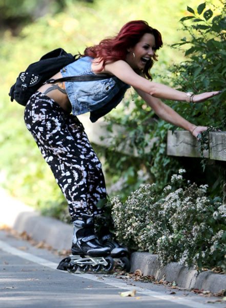 Äskettäin eläinten hyväksi kaikki vaatteensa PETA-järjestön kampanjaan riisunut 27-vuotias kaunotar on nyt kuvattu rullaluistelemassa New Yorkin Keskuspuistossa yhdessä miehensä Lee Staffordin kanssa. Neitokaisen taidot eivät välttämättä olleet parhaat mahdolliset, mutta näyttävyys korvasi puutteet.