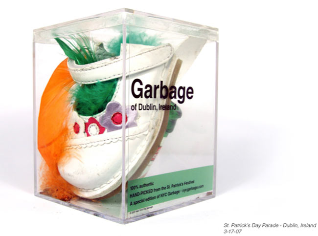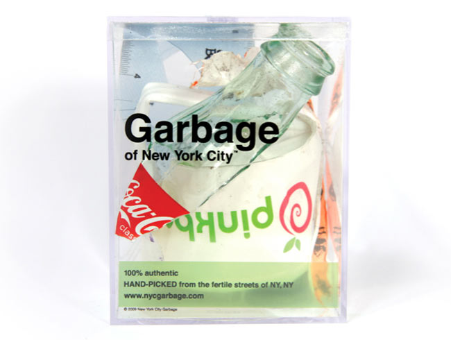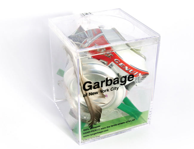 Hintaa kootuille roskille kertyy 100 dollaria paketilta. Taiteilija kertoo, että roskat ovat käsin kerätty New Yorkin kaduilta. Kuutioissa on sisälllä muun muassa kaljatölkkejä, kondomipapereita, haarukoita, pullonkorkkeja ja kenkiä.