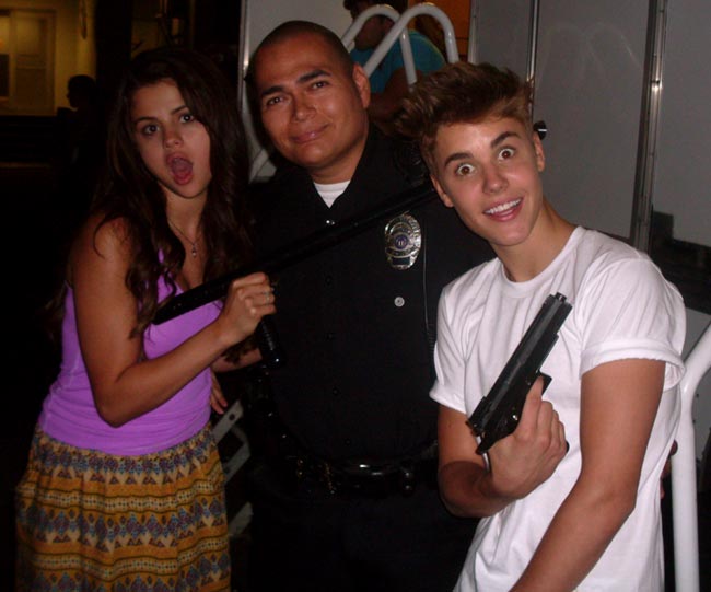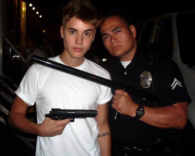 Taannoin Justin aiheutti kohua poseeraamalla verkossa julkaisemassaan kuvassa käsiaseen kanssa. Tapauksesta aiheutunut kohu ei ilmeisesti vaikuttanut mitään, sillä nyt Justin on julkaissut peräti kolme samanlaista kohuttua kuvaa. Niissä hänet nähdään käsiaseen kanssa miespuolisen näyttelijän ja tyttöystävänsä Selena Gomezin kanssa. Tällä viikolla verkkoon päätyneet kuvat on ikuistettu jo 30. elokuuta, kun Bieber vieraili Feed the Dogin kuvauspaikalla.