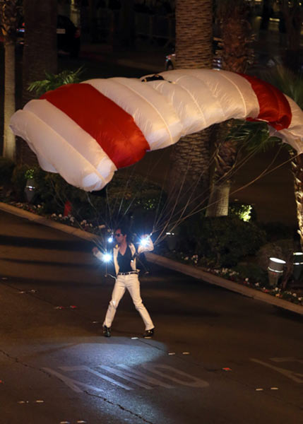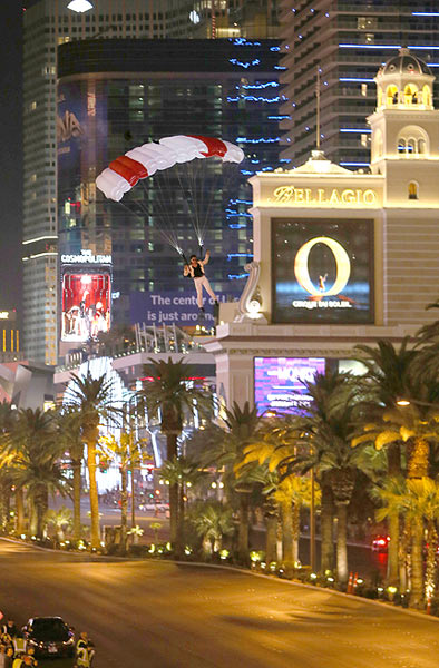 Tänään Las Vegasissa kuvattiin elokuvaan kohtausta, jossa laskuvarjomies hyppää suoraan pelikaupungin pääkadulle The Stripille. Helikopterista hypännyt mies oli ilmeisesti pukeutunut Mr. Chowksi. Suuri määrä poliiseja ja muita viranomaisia pysäytti kuvausten ajaksi liikenteen ja piti asiattomat turistit loitolla.