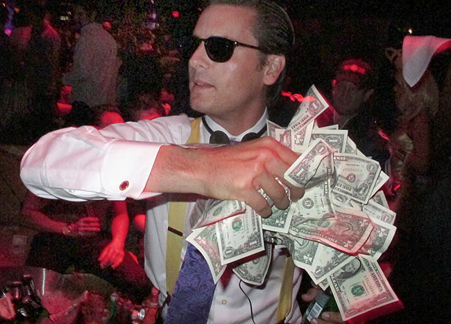 Nyt realitytähti Scott Disick nähdään tuoreimmissa kuvissa juhlimassa Halloweenia Las Vegasissa. Kahden lapsen isä vaihtoi viikonloppuna vapaalle ja nautti naamiaisasuihin sonnustautuneiden kavereidensa seurasta. Ilmeisen rikkaan julkkismiehen bileissä ilo oli ylimmillään, kun hän kaivoi valtavan tukun pieniä seteleitä ja heitteli niitä ilmaan yökerhossa. Lisäksi hän poseerasi valokuvissa tekokirveen kanssa.
