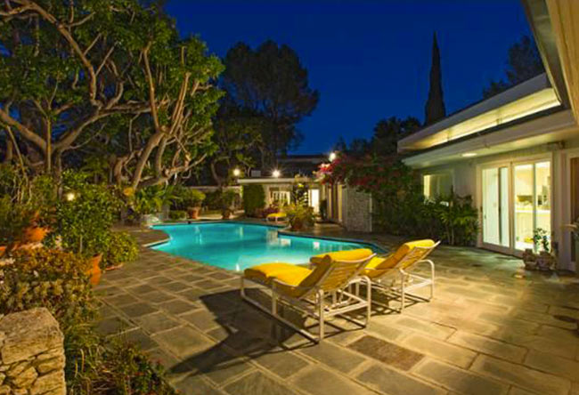 Beverly Hillsin upeilla kukkuloilla sijaitsevan talon pihamaalta on upeat näkymät Los Angelesin keskustan suuntaan. Vuonna 1958 valmistuneessa talossa on oma elokuvateatteri, valtavat vaatekomerot, upea olohuone, toimisto, neljän auton autotalli ja runsaasti hulppeita huoneita. Aiemmin talo on ollut vuokralla 25.000 dollarin kuukausihintaan.