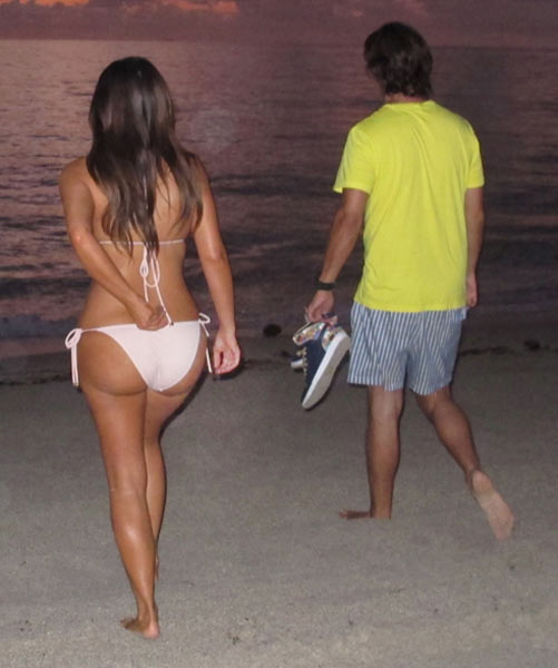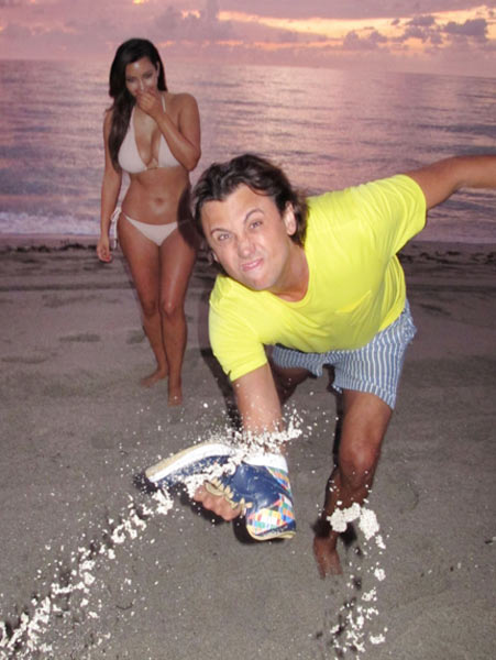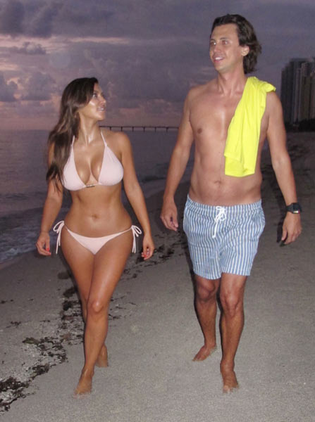 Kim suuntasi rannalle hieman yllättäen illalla auringonlaskun aikaan, ja hänellä oli seuranaan ystävänsä Jonathan Cheban. Paparazzit yllättivät Kimin, ja Cheban innostui heittämään jopa hiekkaa kuvaajien päälle. Vain hetkeä myöhemmin Kim suuntasi lentokentälle ja lensi Roomaan juhlimaan Kanye Westin synttäreitä.