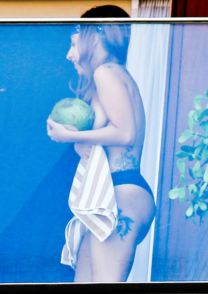 Nyt poppari on yllätetty Rio de Janeirossa sijaitsevan hotellin parvekkeelta, jossa hän nautiskeli alushoususillaan ja rinnat paljaana. Paparazzien saapuessa paikalle laulajatähti ehti suojata intiimit paikkansa pyyhkeellä ja kookospähkinällä.