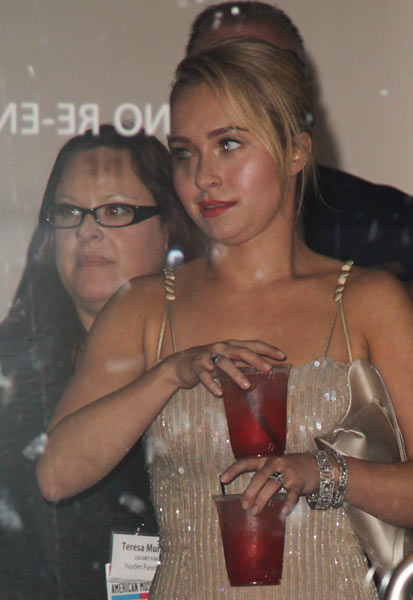 Nyt 23-vuotias Hayden Panettiere on kuvattu AMA-musiikkigaalassa hieman nolossa tilanteessa. Hänet nimittäin yllätettiin kahden drinkin kanssa, joita molempia hän siemaili yleisöltä piilossa. Paparazzi huomasi kuitenkin tilanteen ja ehti napata pari kuvaa ennen kuin Hayden ehti kääntää selkänsä.