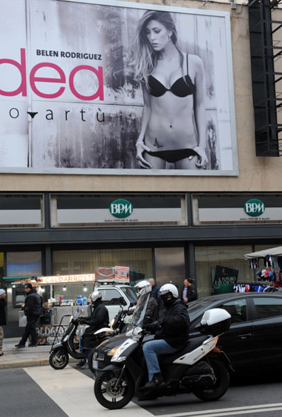 Belen Rodriguez aiheutti taannoin skandaalin, kun hänen kotipornovideonsa päätyi julkisuuteen. San Remon -laulufestivaalia viime vuonna Italiassa kaunistuttanut neitokainen nähdään parhaillaan Italiassa Milanon katukuvassa valtavissa mainoskuvissa poikkeuksellisen viettelevissä alusvaatteissa. Harva miesautoilija kykenee todennäköisesti pitämään katseensa poissa Belenin vartalosta.