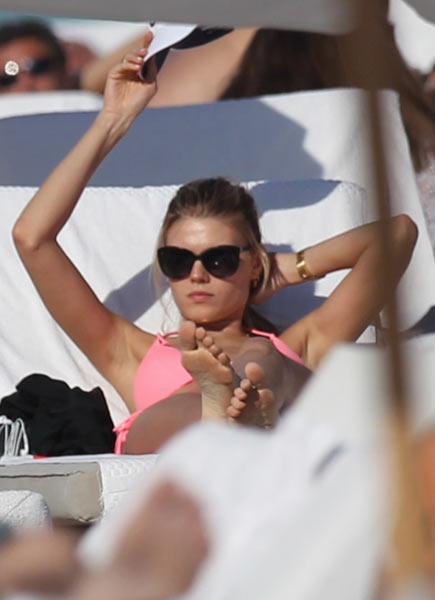 Nyt vaalea malli on ikuistettu paparazzien kuviin, joista huomaa hyvin, minkä takia häntä pidetään eräänä maailman kauneimmista naisista. Miamin rannalla lomaillut kaunotar oli verhonnut täydellisyyttä hipovan kroppansa vaaleanpunaisiin bikineihin.