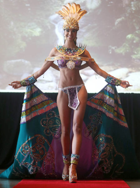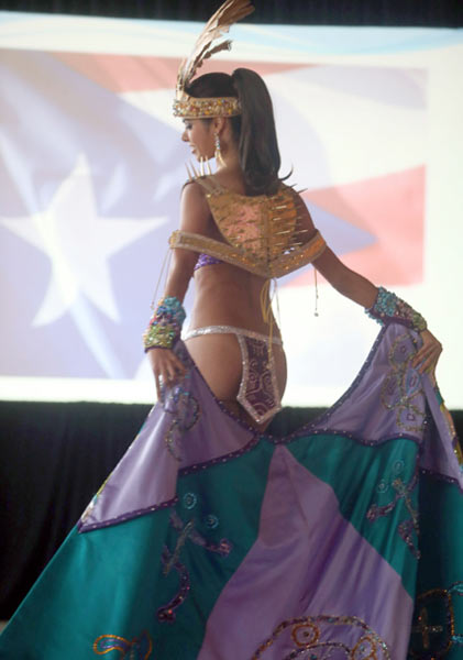 Puerto Ricon edustaja Miss Universum -kilpailussa on Bodine Koehler, joka on nyt esitellyt lehdistölle hänen kisa-asunsa. Todella näyttävä ja paljastava asu edustaa intialaista fantasiaa ja se on saanut inspiraatiota jumalatar Atabeystä. Astrid Castron suunnittelemassa asussa on peräti 16.000 Swarovskin kristallia.