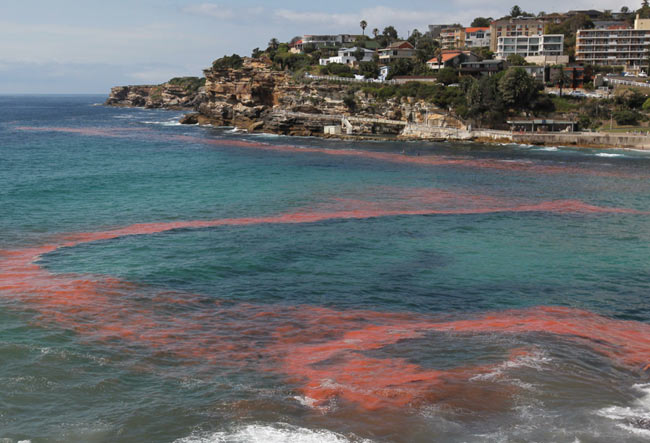 Esimerkiksi Sydneyn Bronte Beachilla havaittiin nimittäin yllättäen ilmiö, jonka aiheutti levä nimeltä Red Algae. Siinä merivesi värjäytyy suurilta alueilta yllättäen punaiseksi. Kyseessä on luonnollinen ilmiö, eilä esimerkiksi saasteista johtuva, mutta siitä huolimatta uimarantoja jouduttiin sulkemaan. Monet surffaajat kuitenkin uhmasivat kieltoa ja saivat kiitää punaisilla aalloilla.