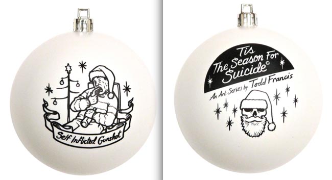 Koristeita on lukemattomia erilaisia, mutta nyt markkinoille on tullut keskimääräistä masentavampi koristesarja. Amerikkalainen taiteilija Todd Francis on suunnitellut joulupallojen sarjan, jolle hän antoi nimeksi ”Joulu on itsemurhan aikaa”.