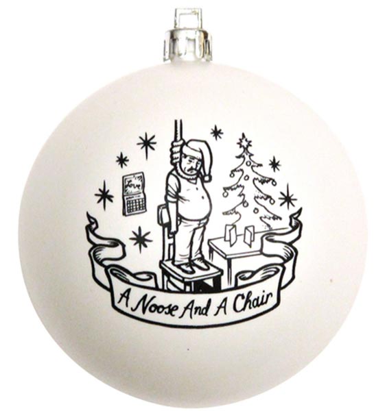 Koristeiden kuvissa on hyvinkin synkkiä viittauksia oman henkensä riistämiseen, joten kovin moni tuskin tällaisia koristeita kaipaa. Varsinkaan jouluna. Paketin hinta on Equaldist.com -verkkokaupassa 60 dollaria.